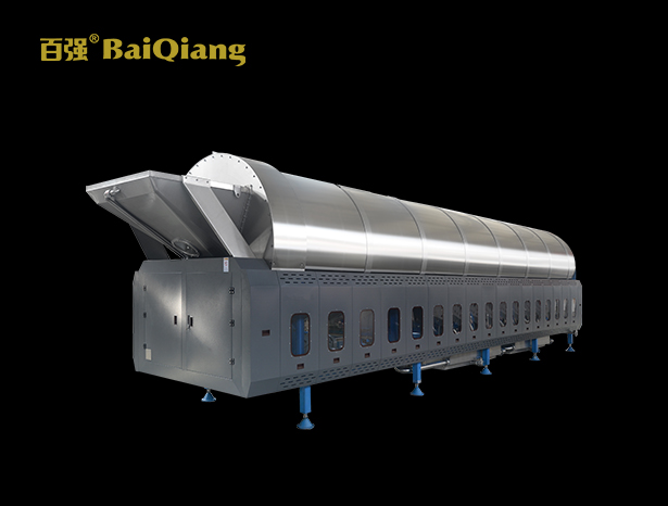 百強隧道式洗衣機系列(國內稱之為“洗滌龍”),與傳統洗衣機相比,該設備采用了 水循環和過濾技術,極大降低了水消耗和蒸汽消耗;可節水 70%、節電 60% 以上,節省人力 80%。傳送和洗滌倉采用較佳配比設計,造就其強大的洗滌機械作用力和洗 凈度。不銹鋼滾筒及洗衣龍連接管線均按照德國的質量標準和衛生標準設計制造, 觸控式面板操作智能簡便,洗衣龍內置標準洗滌程序,可以自由編制洗滌程序。雙馬 達驅動裝置,保證了龍運作的穩定性。百強洗滌龍技術以穩定、實用、簡潔、維護成 本低為基礎,以適應中國市場為出發點,用優質的產品,良好的服務去營造品牌優勢。